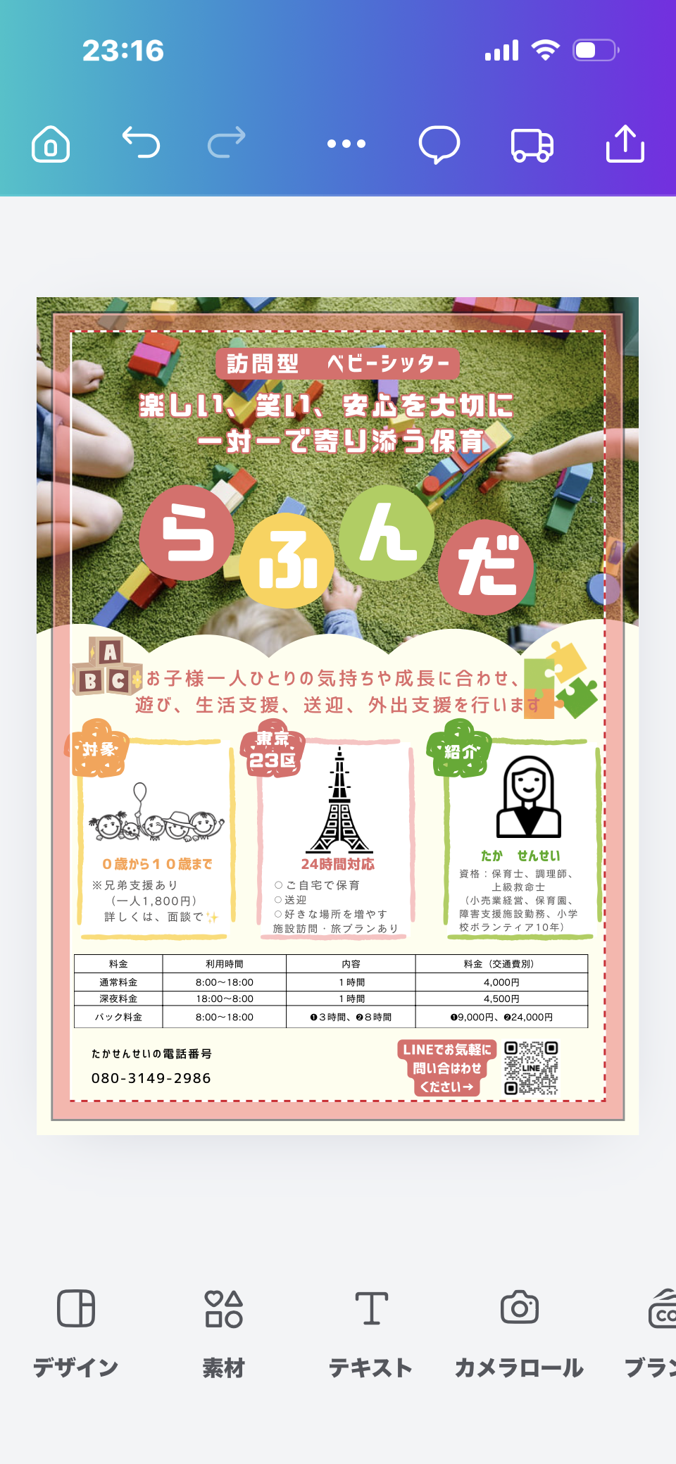 【訪問型ベビーシッター らふんだ】 \ 3月5日 開業 / 東京都23区・24時間対応 急な残業、体調不良、夜間・早朝も対応可能。 保育士資格・上級救命講習修了、子育て経験を活かし、 ご家庭に寄り添った安心のサポートを行います。 一人ひとりに向き合う、あたたかな保育。 らふんだ ― 笑いと安心は、セット。 対象:0歳から10歳まで エリア:東京23区 流れ: LINE登録→面談→利用 ※しっかり保険に加入してます! 紹介 名前:たか先生 年齢:44さい 小売業13年→子育て21年目✨  保育園、児童発達支援、放課後等デイサービス 夢だった自分の店を立ち上げる😊